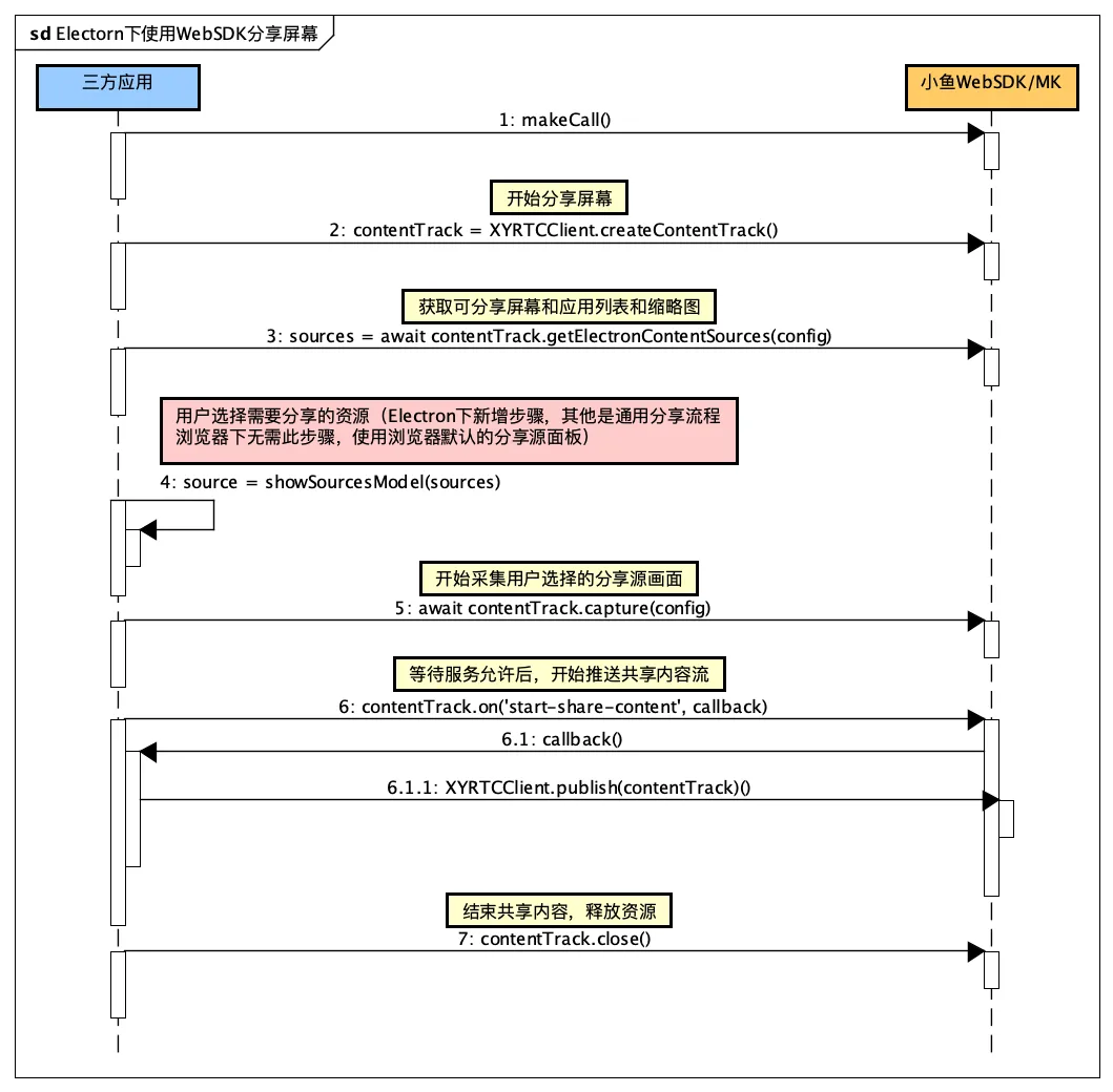 Electorn下实现共享内容的流程示意图: